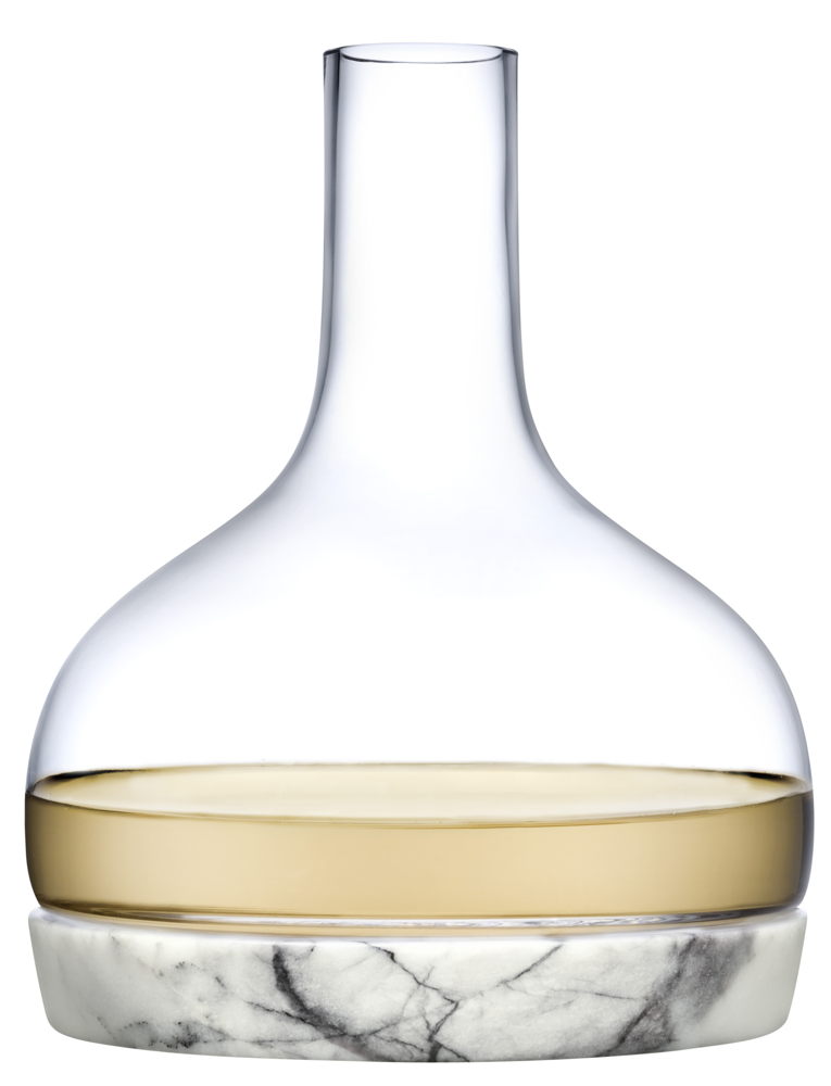 "Decanters with a wide base and nipped-in neck work best, allowing a large surface area to come into contact with oxygen whilst ensuring fragrant aromas don't dissipate. Designs with stoppers are good for when you don't expect to finish the bottle, keeping the red fresher for longer for the coming days. There are even marble-based options these days, a novel concept for decanting white wine. Typically chilled in the freezer first, they'll keep the contents cool and make for a conversational tabletop addition."